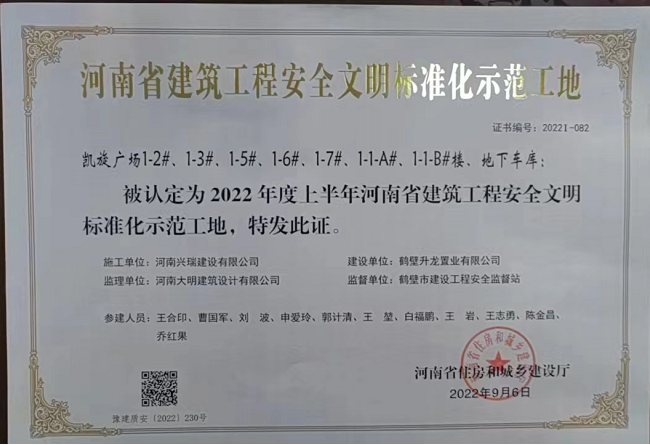 10月11日,公司承建的鶴壁凱旋廣場(chǎng)項(xiàng)目榮獲“2022年上半年河南省建筑工程安全文明標(biāo)準(zhǔn)化示范工地 ”稱(chēng)號(hào)。自開(kāi)工以來(lái),項(xiàng)目部制訂了河南省安全文明工地創(chuàng)建計(jì)劃,成立了以項(xiàng)目經(jīng)理為組長(zhǎng)的領(lǐng)導(dǎo)小組,將安全生產(chǎn)責(zé)任層層分解,保障安全文明資金專(zhuān)款專(zhuān)用,積極開(kāi)展隱患排查治理、教育培訓(xùn)等工作,確保各項(xiàng)安全、環(huán)保工作落實(shí)到位。一直以來(lái),公司高度重視安全文明工地的創(chuàng)建工作,項(xiàng)目開(kāi)工前,明確約定創(chuàng)優(yōu)目標(biāo),對(duì)獲獎(jiǎng)項(xiàng)目按規(guī)定予以表彰獎(jiǎng)勵(lì)。同時(shí),安排專(zhuān)人對(duì)項(xiàng)目創(chuàng)優(yōu)工作進(jìn)行跟蹤指導(dǎo),針對(duì)專(zhuān)家組提出的問(wèn)題,督導(dǎo)項(xiàng)目部按期整改落實(shí),確保通過(guò)率達(dá)到100%。經(jīng)過(guò)不懈努力,公司形成了比學(xué)趕超、爭(zhēng)優(yōu)創(chuàng)先的良好氛圍,工程項(xiàng)目建設(shè)創(chuàng)優(yōu)創(chuàng)杯能力大幅提升,樹(shù)好了“河南興瑞”品牌。 據(jù)悉,公司承建的鶴壁凱旋廣場(chǎng)是淇河邊新地標(biāo)建筑,建業(yè)集團(tuán)在河南的第六座凱旋廣場(chǎng)。坐擁淇河生態(tài)風(fēng)貌帶,臨河地塊,整體規(guī)劃47萬(wàn)平方米,項(xiàng)目有有13棟樓,9棟住宅,2棟辦公樓,2棟公寓,集萃商業(yè)住宅公寓寫(xiě)字樓等全業(yè)態(tài),約141米灣畔天幕雙子塔,名師打造,將為鶴壁在淇河打造天際線。其中目前正在施工的一期住宅樓1-2#、1-3#、1-5#、1-6#、1-7#五棟樓總建筑面積90951平方米,剪力墻結(jié)構(gòu),筏板基礎(chǔ),地上27層地下三層,建筑高度79.85米。一期1-1-A#寫(xiě)字樓總建筑面積66390平方米,地上26層,地下2層,建筑高度141米;1-1-B#公寓樓總建筑面積129864平方米,地上17層,地下2層,建筑高度99.65米,目前寫(xiě)字樓和公寓正在緊張的主體結(jié)構(gòu)施工中。