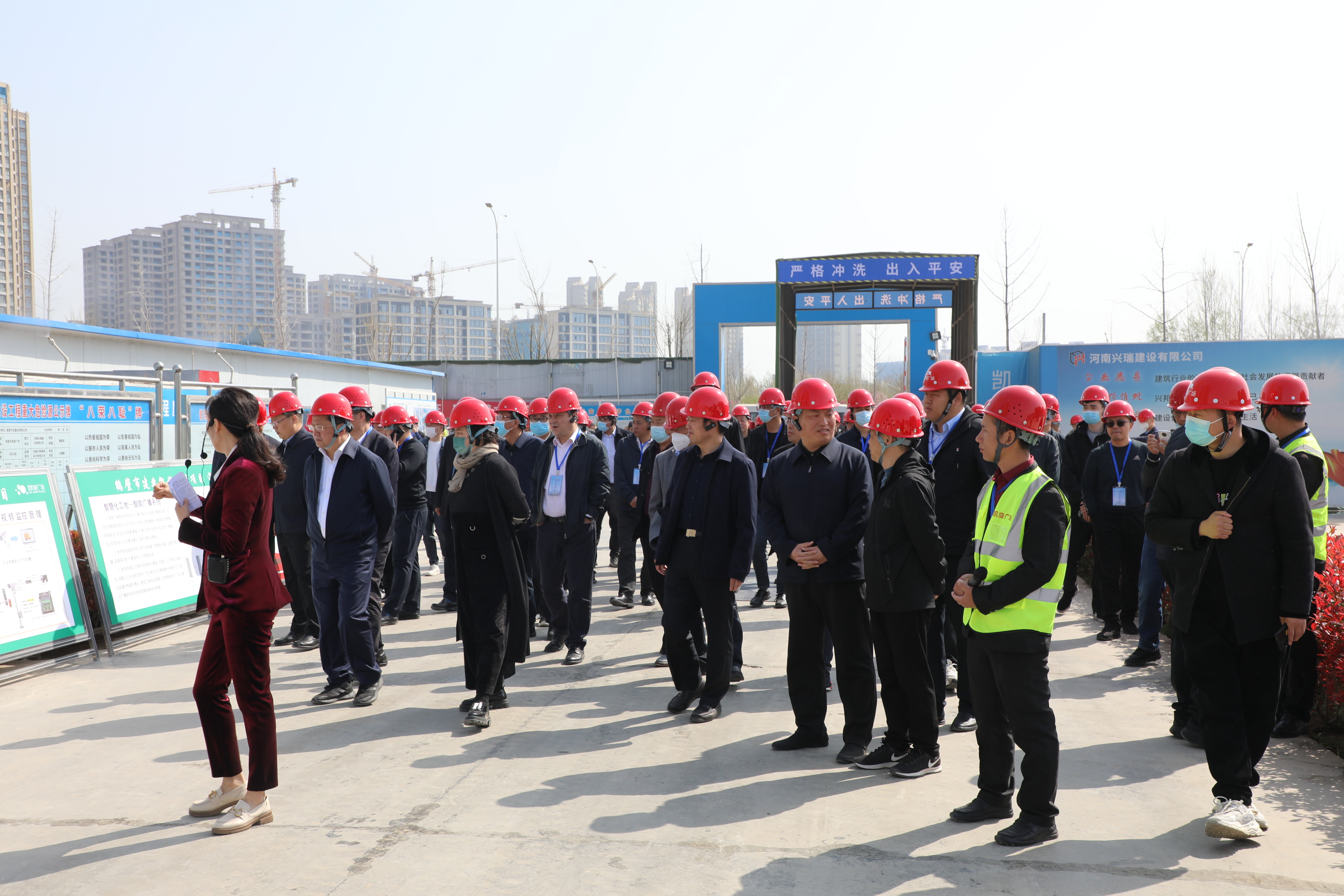鶴壁凱旋廣場(chǎng)項(xiàng)目作為鶴壁市揚(yáng)塵治理新型智慧化工地代表項(xiàng)目,受到觀摩人員點(diǎn)贊。觀摩團(tuán)在講解員的引導(dǎo)下,查看了項(xiàng)目質(zhì)量樣板展示區(qū)主體結(jié)構(gòu)樣板、樓梯樣板、砌體抹灰樣板、屋面樣板等實(shí)體樣板展示和一些質(zhì)量提升做法的展板。