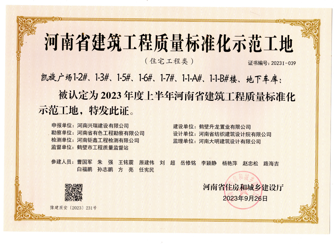 近日,鶴壁凱旋廣場項(xiàng)目榮獲“河南省建筑工程質(zhì)量標(biāo)準(zhǔn)化示范工地”稱號。該榮譽(yù)稱號由河南省住房和城鄉(xiāng)建設(shè)廳主導(dǎo)設(shè)立,旨在充分發(fā)揮質(zhì)量管理標(biāo)準(zhǔn)化先進(jìn)典型示范引領(lǐng)作用,全面提升工程質(zhì)量水平。該榮譽(yù)每年評選兩次,自2020年設(shè)立至今已評選六屆。